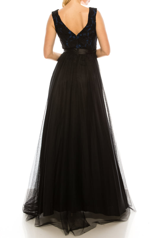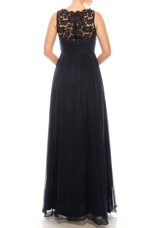 Aidan Mattox Sleeveless Floral Lace Bodice Dress