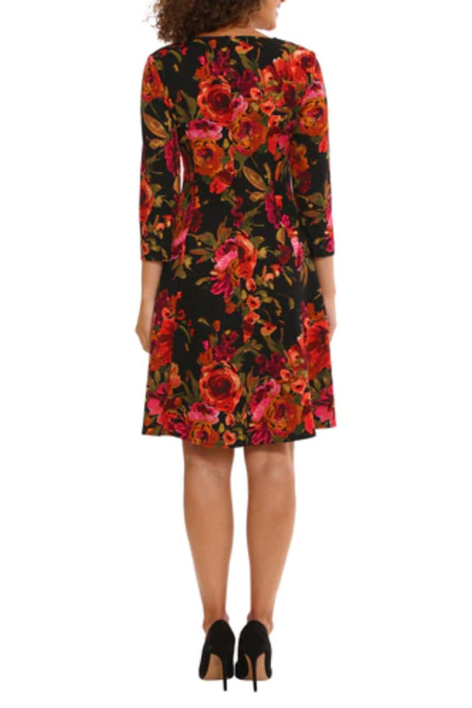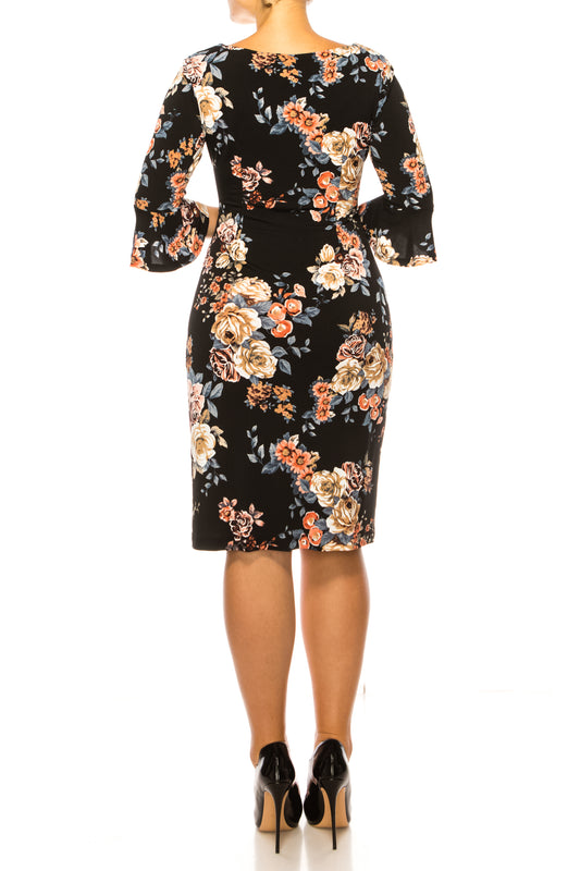 Connected Apparel Floral 3/4 Split-Sleeve Dress
