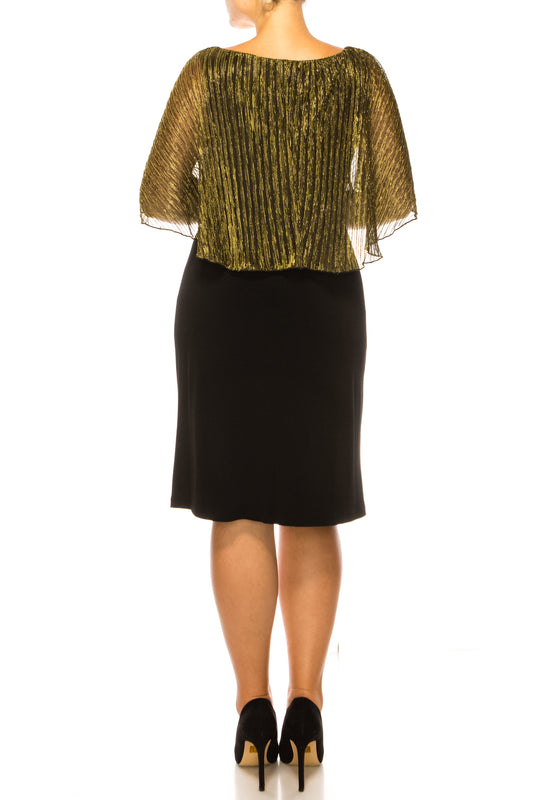Connected Apparel Gold Caplet Sleeve Evening Dress