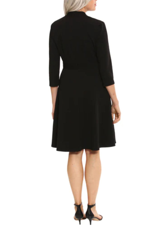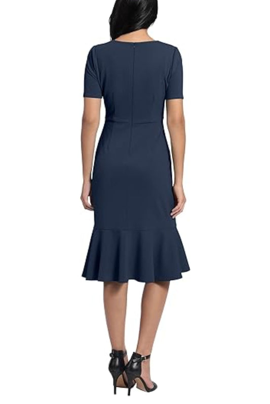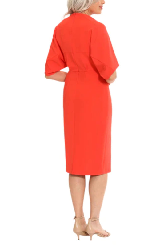 Connected Apparel V-Cut Neck 3/4 Sleeve Dress