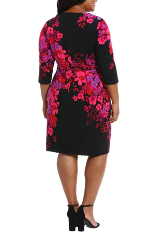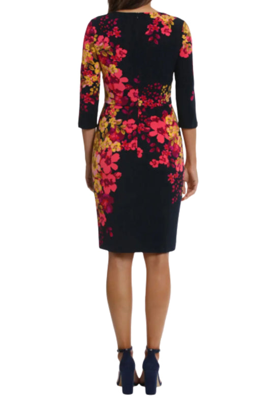 Connected Apparel Floral 3/4 Sleeve Sheath Dress