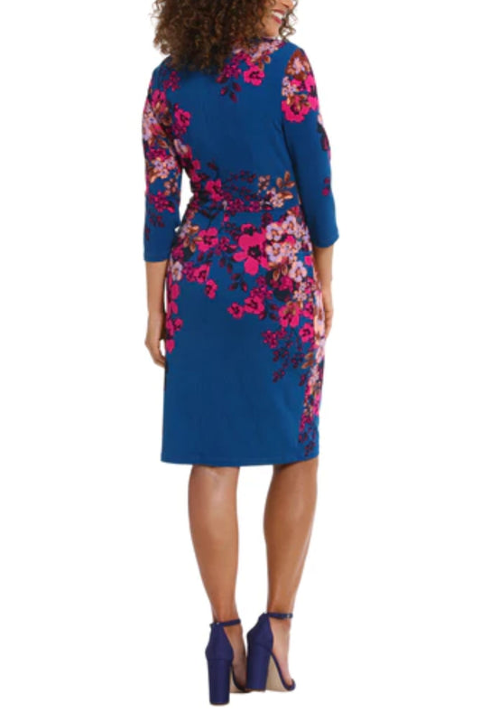 London Times Floral Print 3/4 Sleeve Sheath Dress