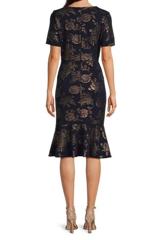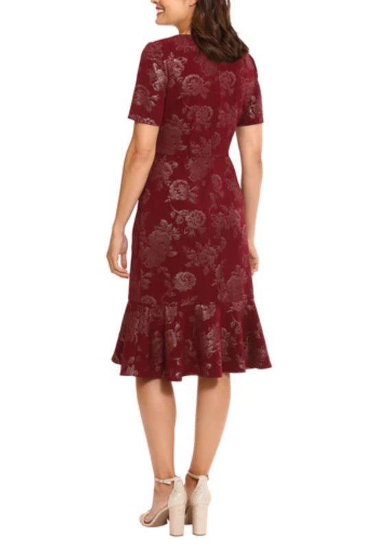 London Times Floral Short-Sleeve Ruffled Hem Dress