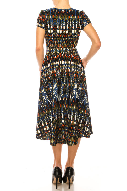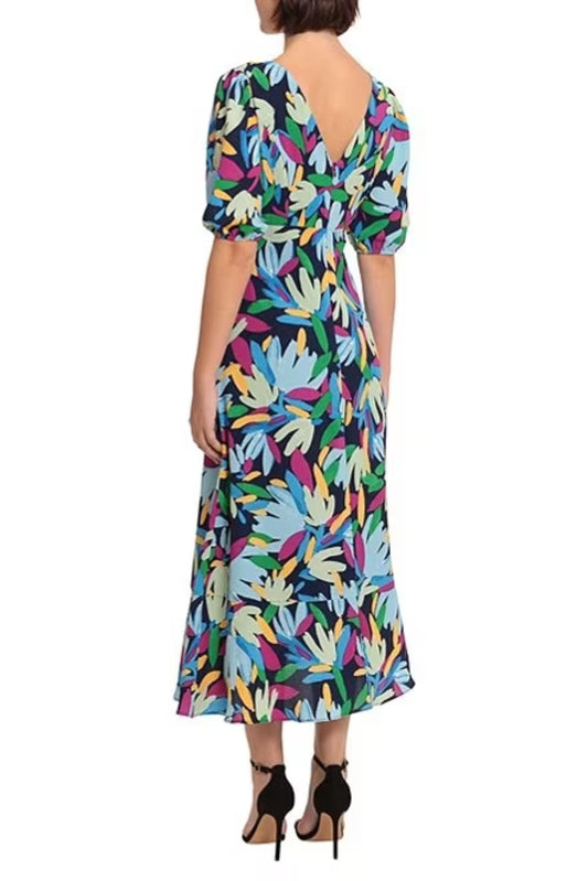 Maggy London Tie Neck Short Sleeve A-Line Dress