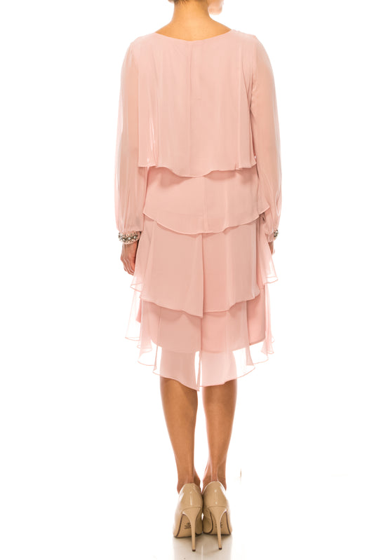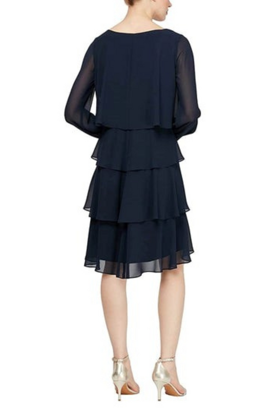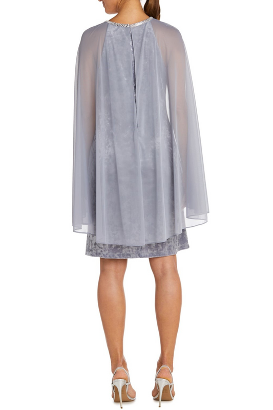 SLNY Metallic Cape Sleeve Short Evening Dress