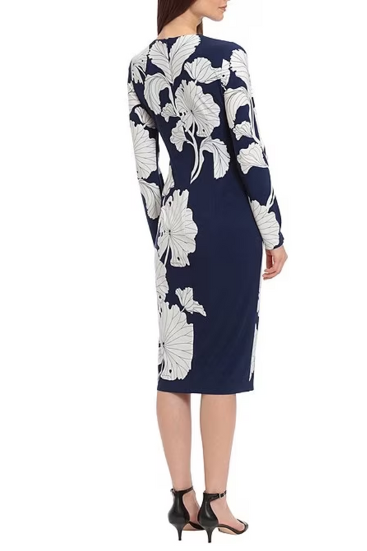Maison Tara Floral Faux-Wrap Long Sleeve Dress