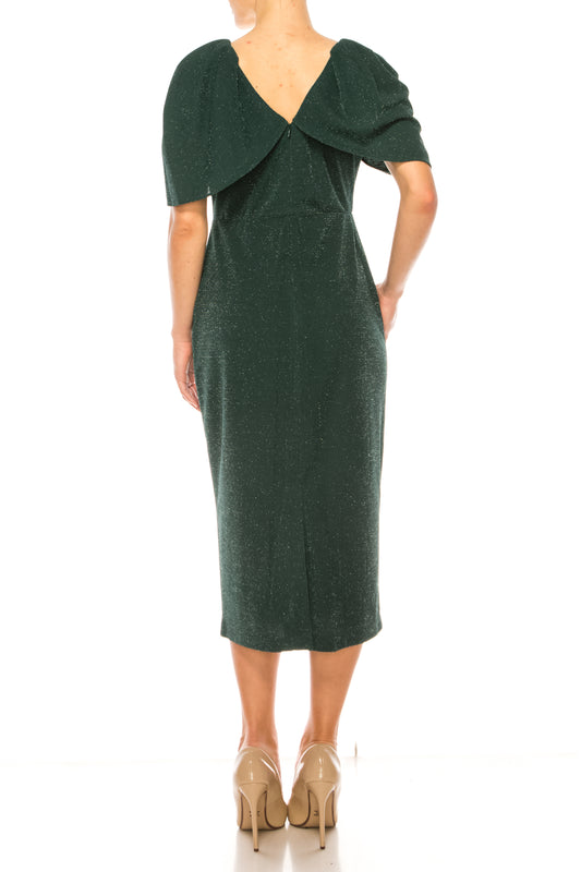 Maison Tara Metallic Capelet Sleeve Midi Dress