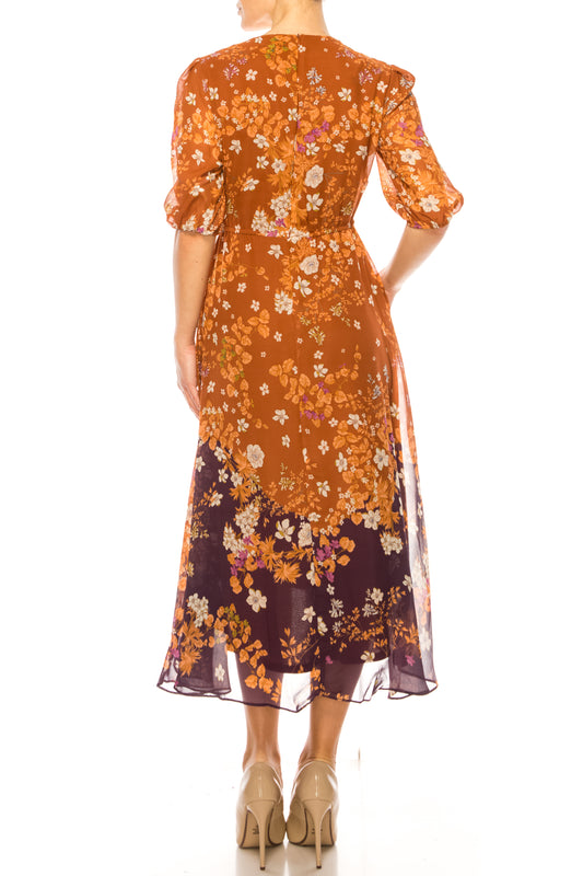 Maison Tara Floral Contrast 3/4 Sleeve Dress