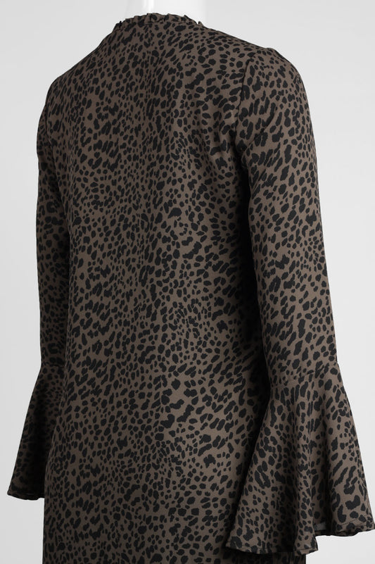 Carre Noir Tie-Neck Animal Print Short Dress
