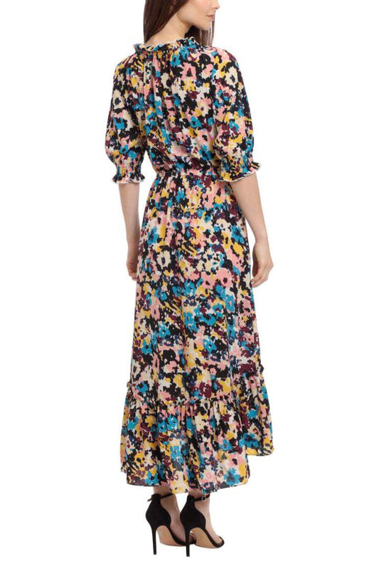 RM Richards Floral Faux-Wrap Short Sleeve Dress