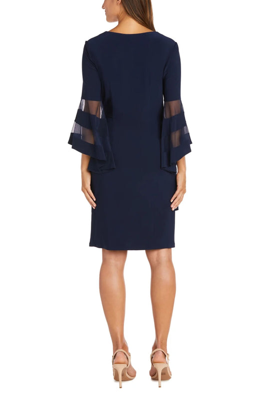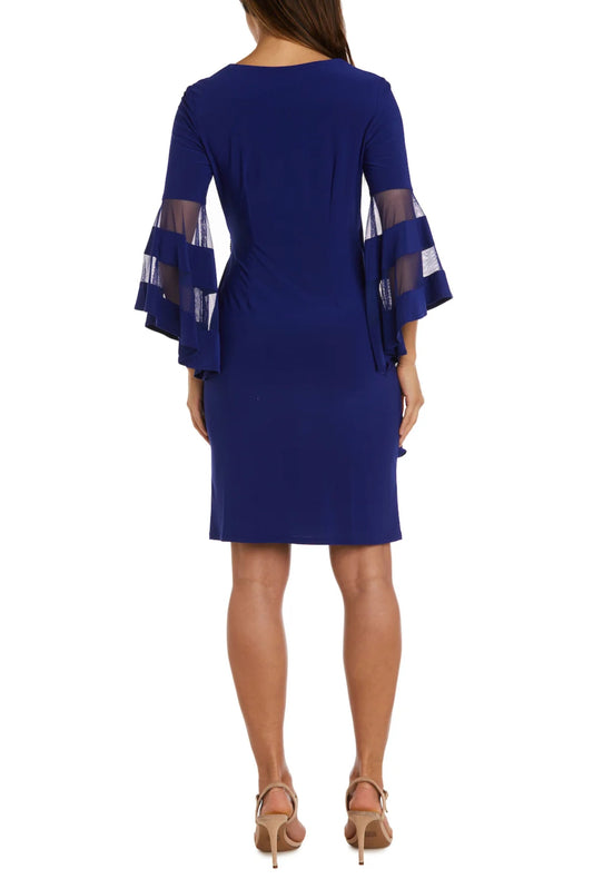 R&M Richards Long Bell Sleeve Short Evening Dress