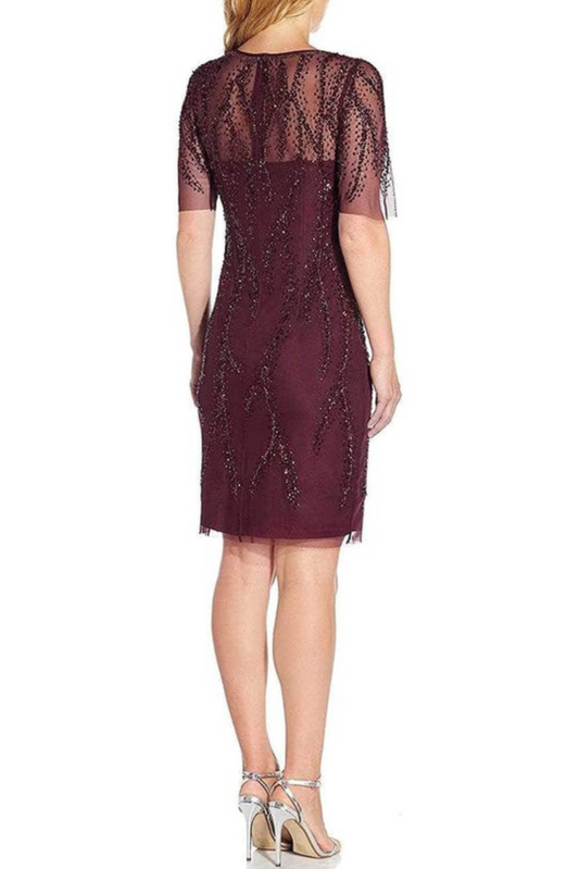 Adrianna Papell Beaded Sequin Short Evening Dress