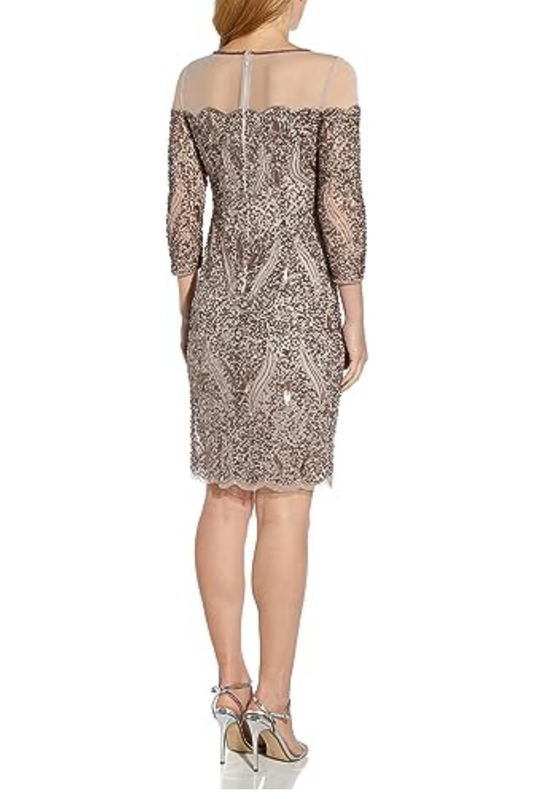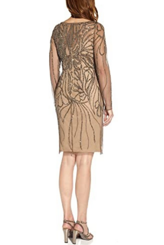 Adrianna Papell Beaded Long Sleeve Sheath Dress