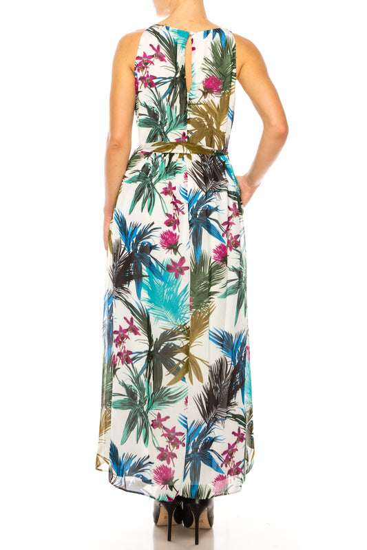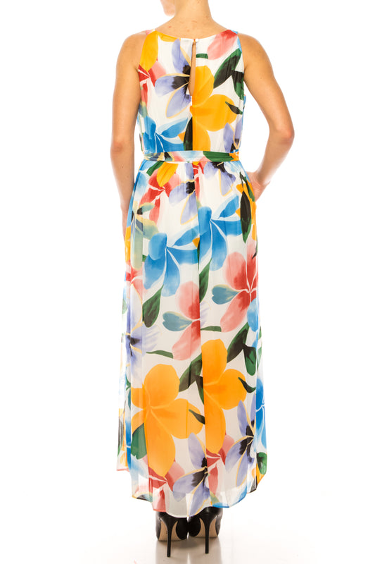 ILE Clothing Floral Sleeveless Belted Maxi Dress