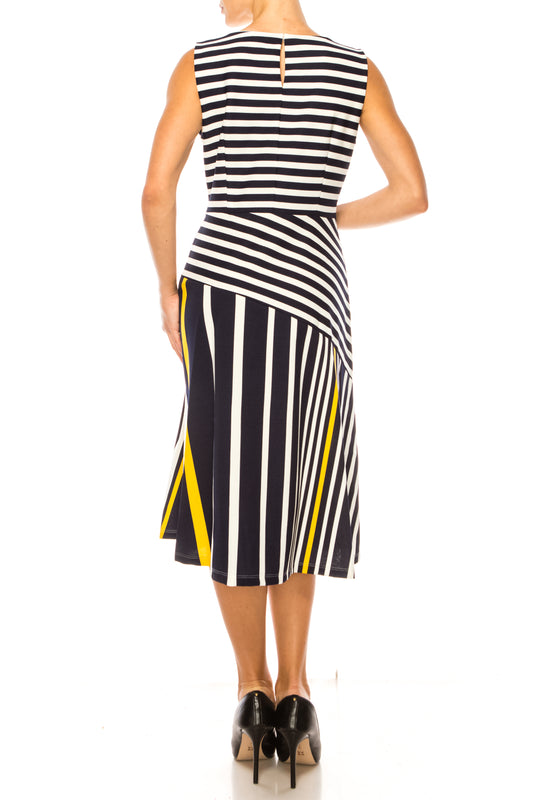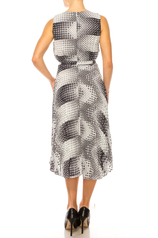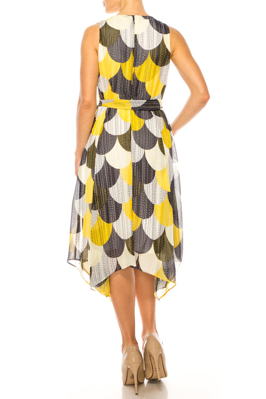 ILE Clothing Sleeveless Belted A-Line Print Dress