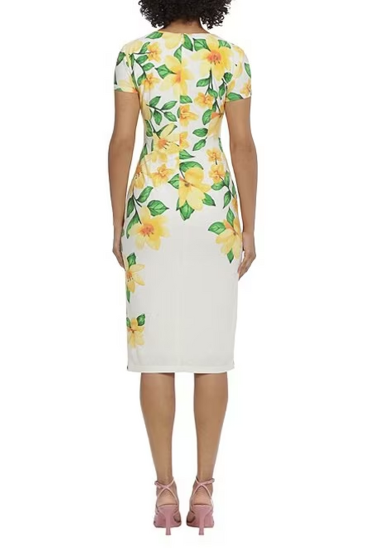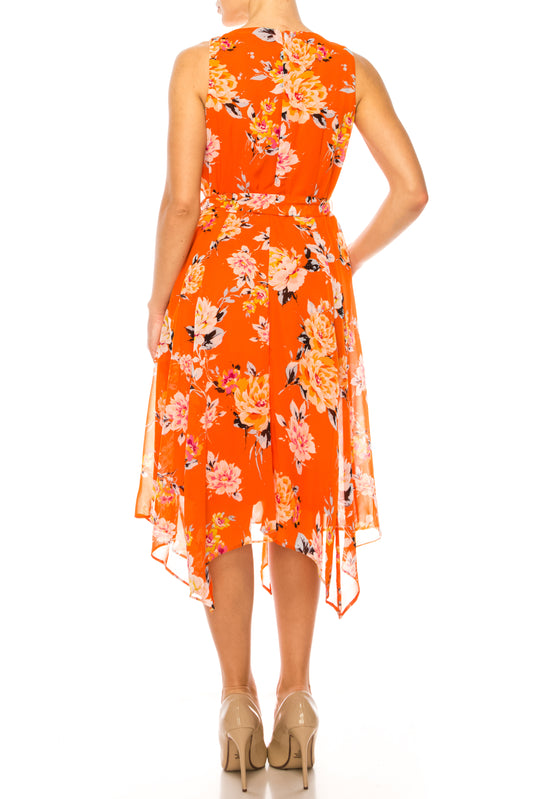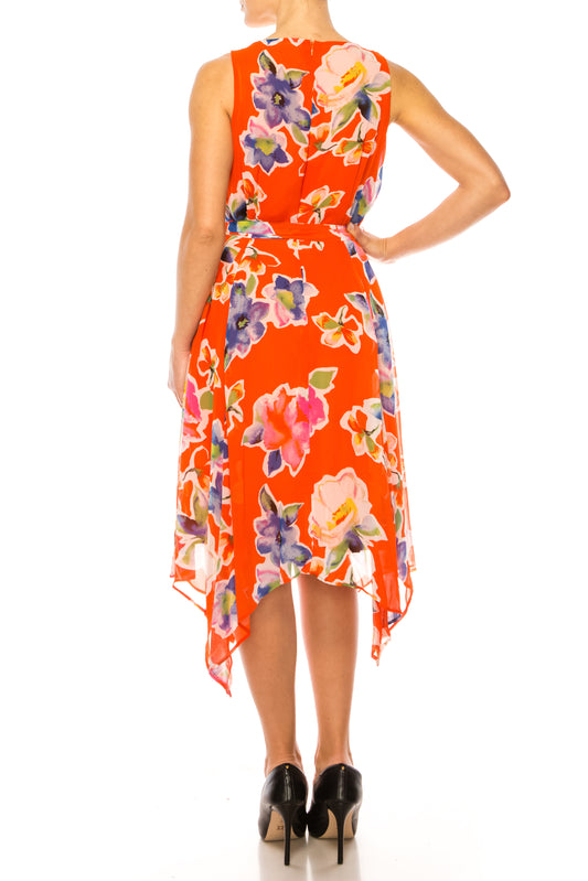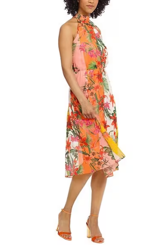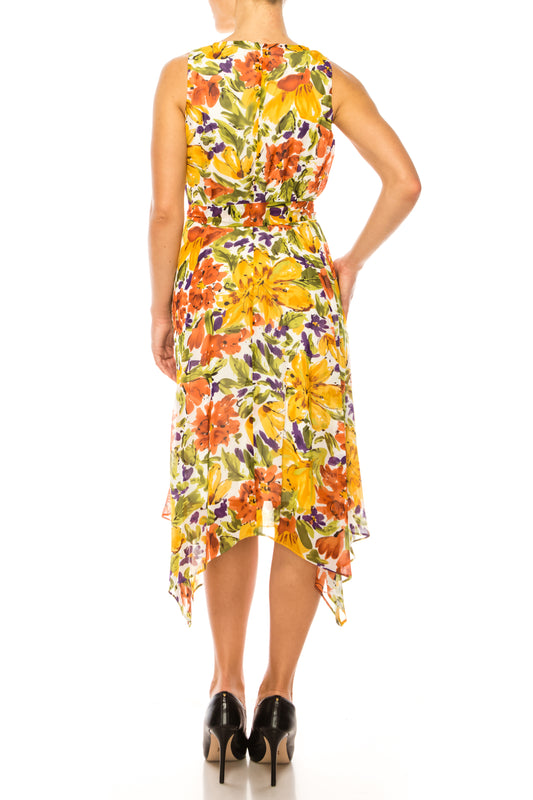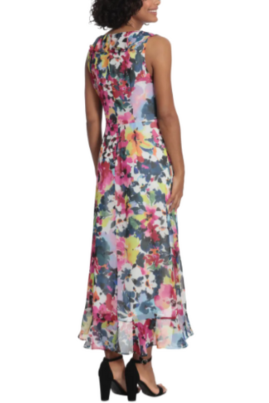 Maggy London Floral Sleeveless Frilly Midi Dress