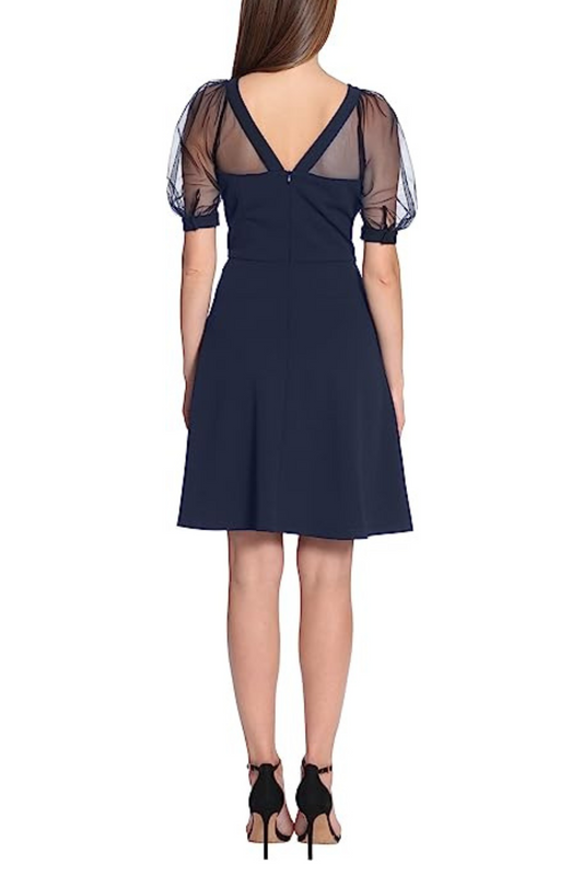 Ivy + Blu 3/4 Sleeve Mock Neck Fit & Flare Dress