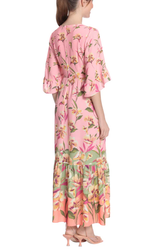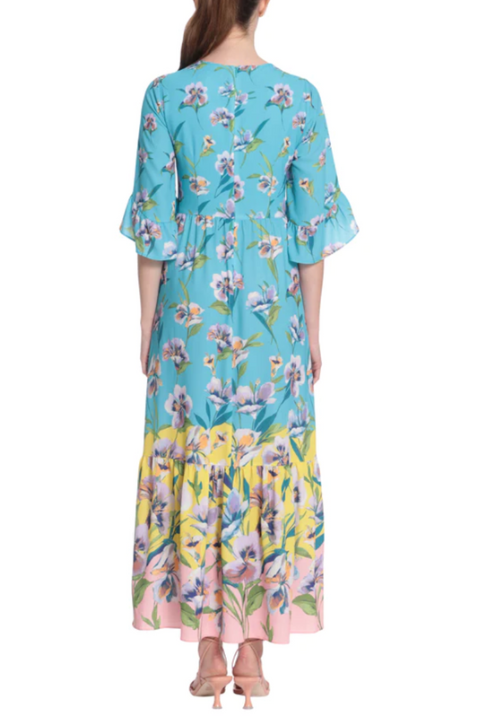 London Times 3/4 Sleeve Floral Print Maxi Dress