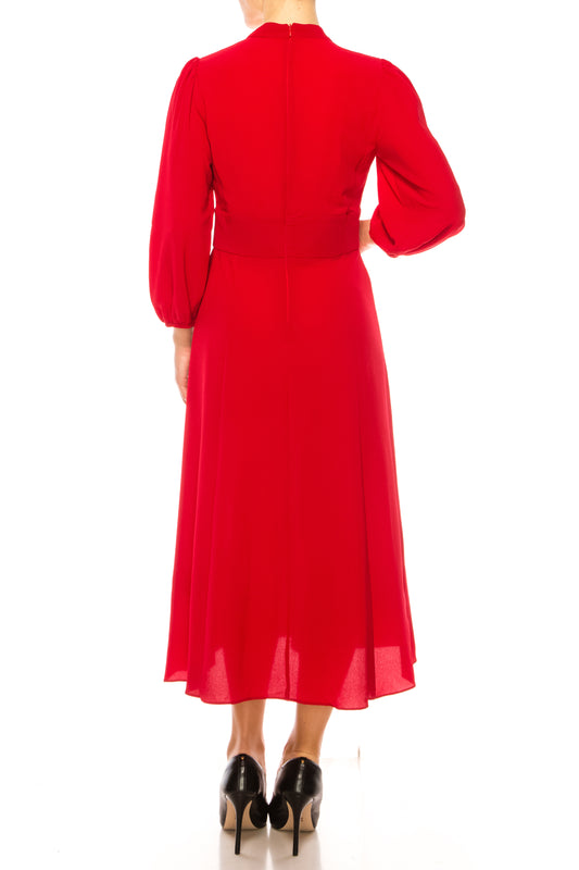 Maggy London Long Sleeve Mock Neck Midi Dress