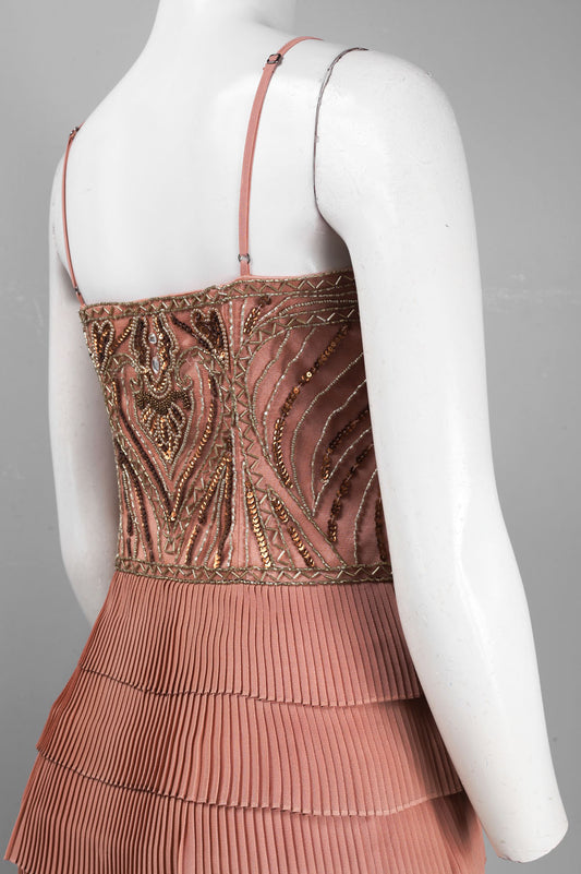Sue Wong Spaghetti Strap Beaded Accordion Dress