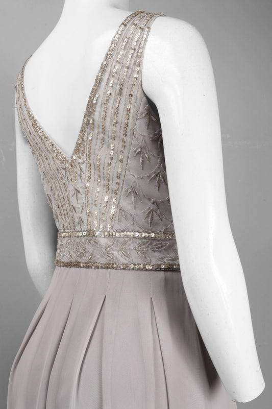Aidan Mattox Silver Beaded Open-Back Evening Dress