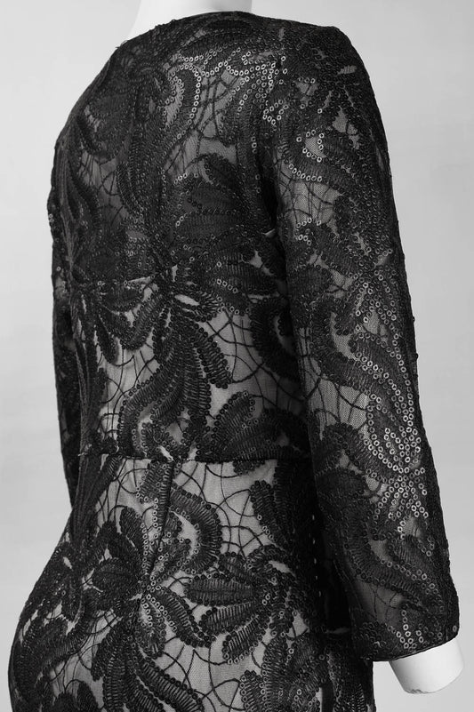 Sue Wong 3/4 Sleeve Sequined Mesh Short Dress