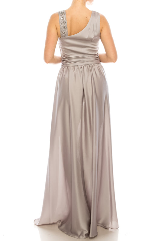 Decode 18 Beaded Asymmetrical Neckline Satin Dress