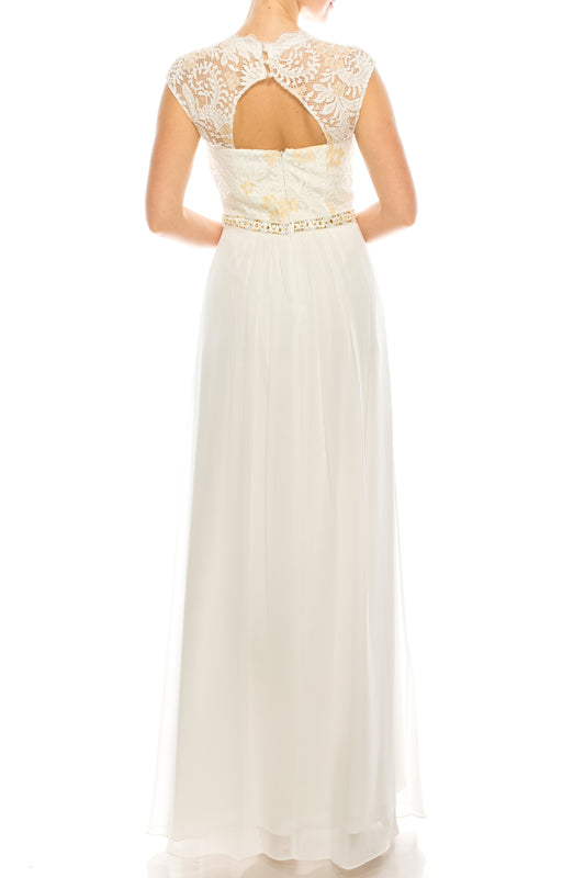 Aidan Mattox Cap Sleeve Embellished Mesh Dress