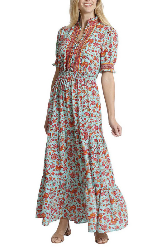 Maison Tara Short Sleeve Multilayered Ruffle Dress
