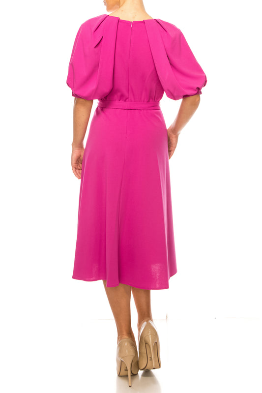 Maison Tara Belted Short Sleeve Knee Length Dress