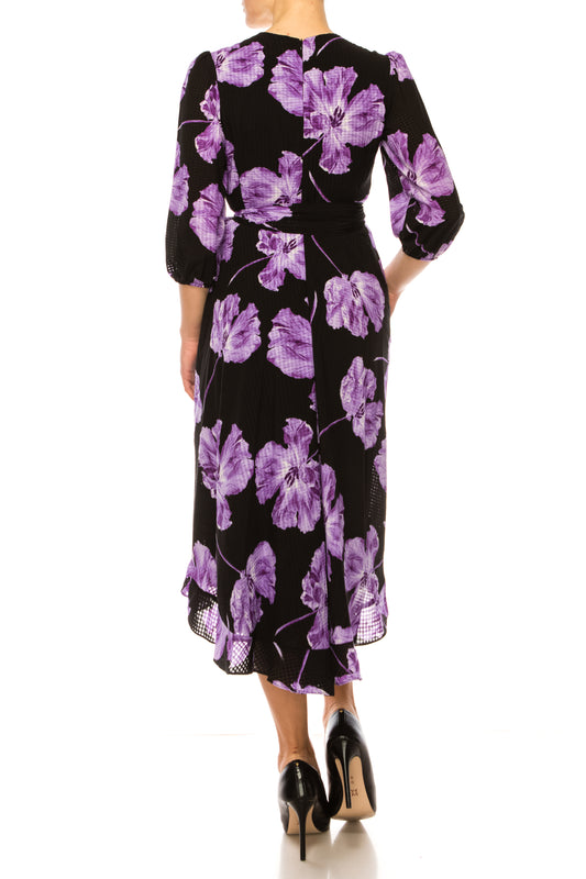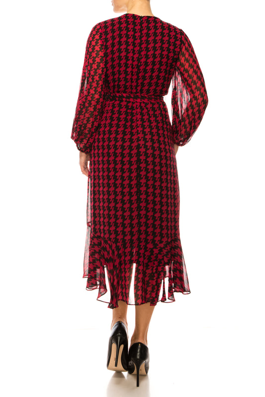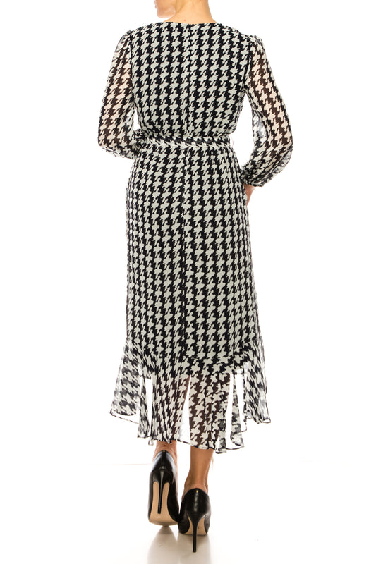 Maison Tara Faux Wrap Houndstooth Print Midi Dress