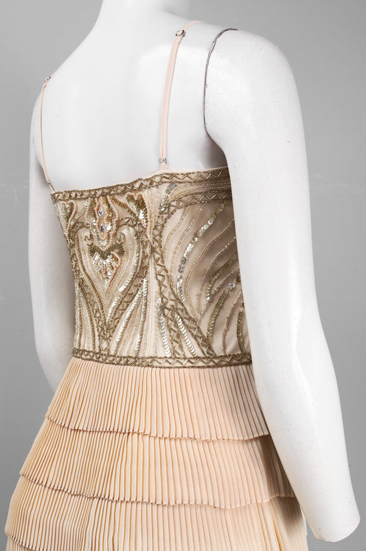Sue Wong Spaghetti Strap Beaded Accordion Dress