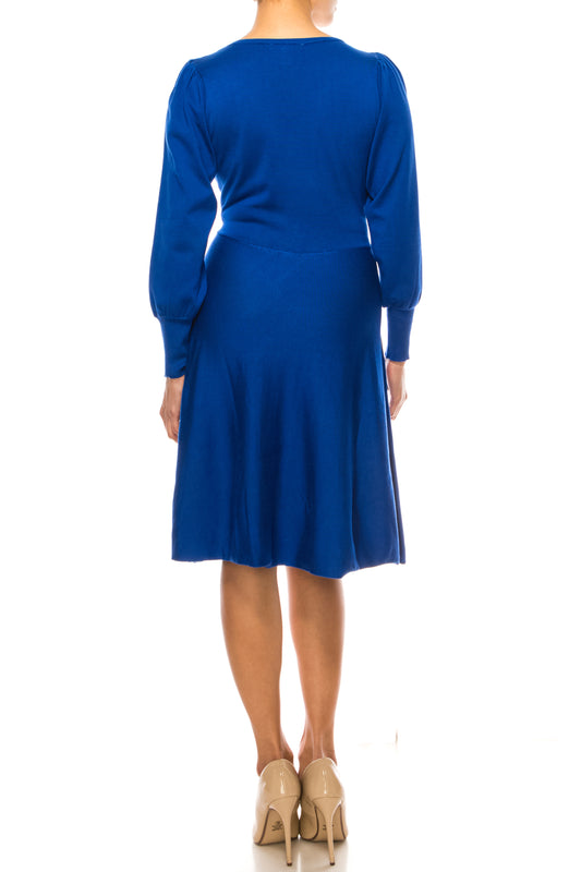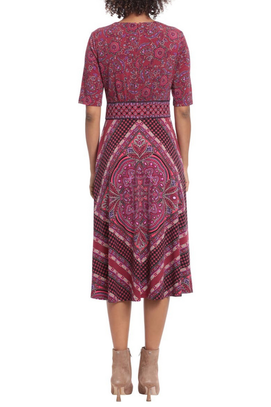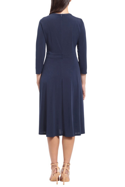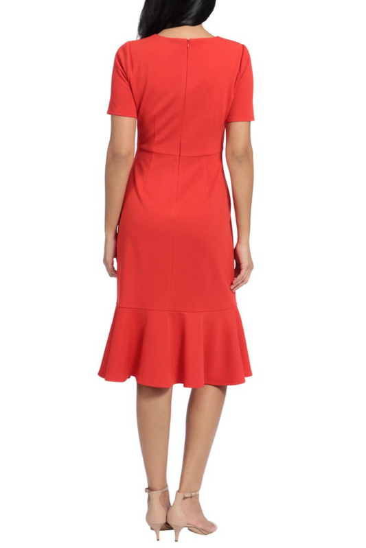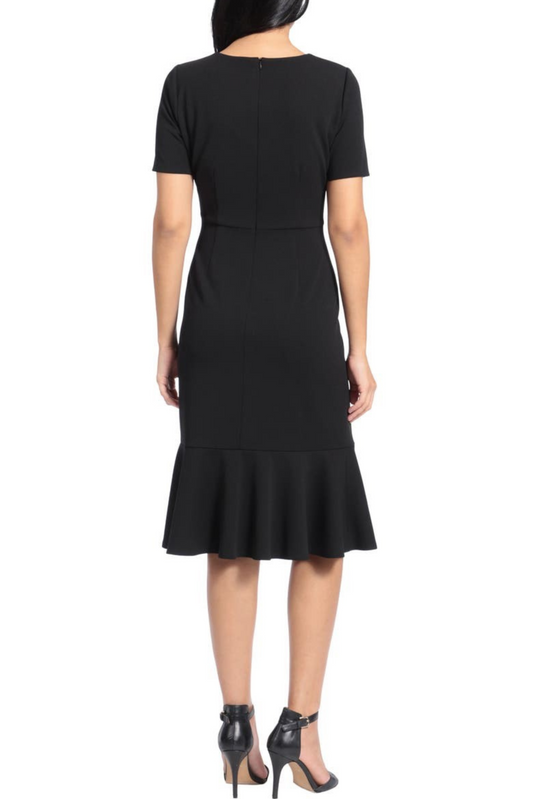 London Times Short Sleeve Faux Wrap Style Midi Dress