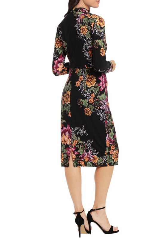 London Times Floral Print Mock Neck Sheath Midi Dress