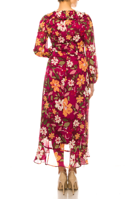 Connected Apparel Floral Lace Chiffon Sleeve Dress