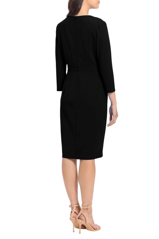 London Times 3/4 Sleeve Button Detail Short Sheath Dress