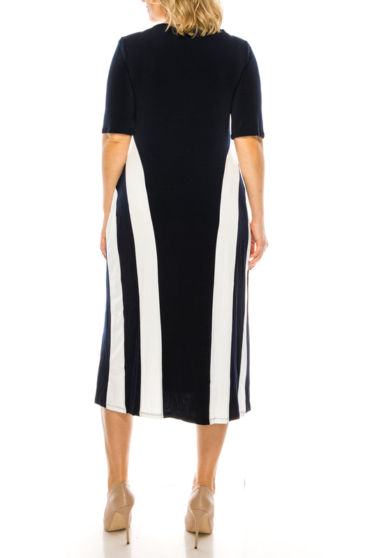 ILE Clothing Short Sleeve Side Stripe Detail Midi Dress (MORE COLORS)