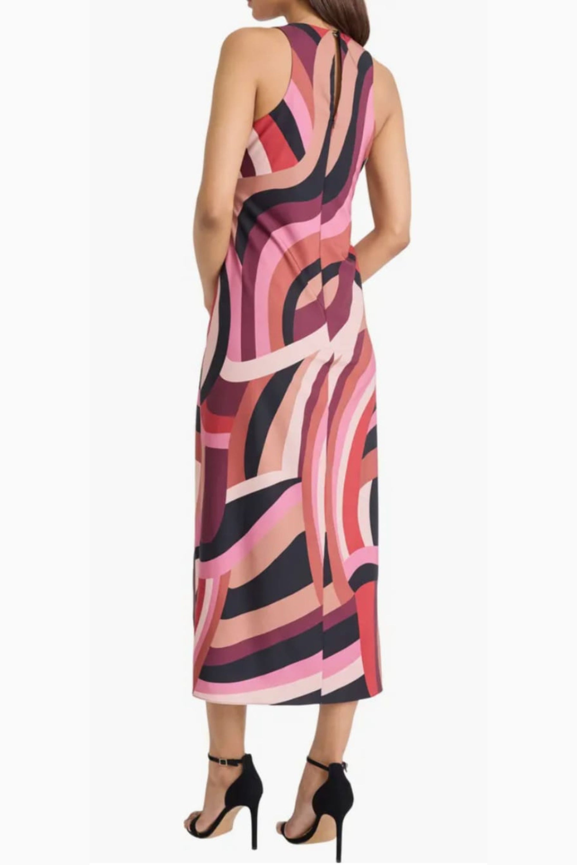 Santeen sleeveless long dress with hidden back zipper. Dress is lined. STYLE: D9867M