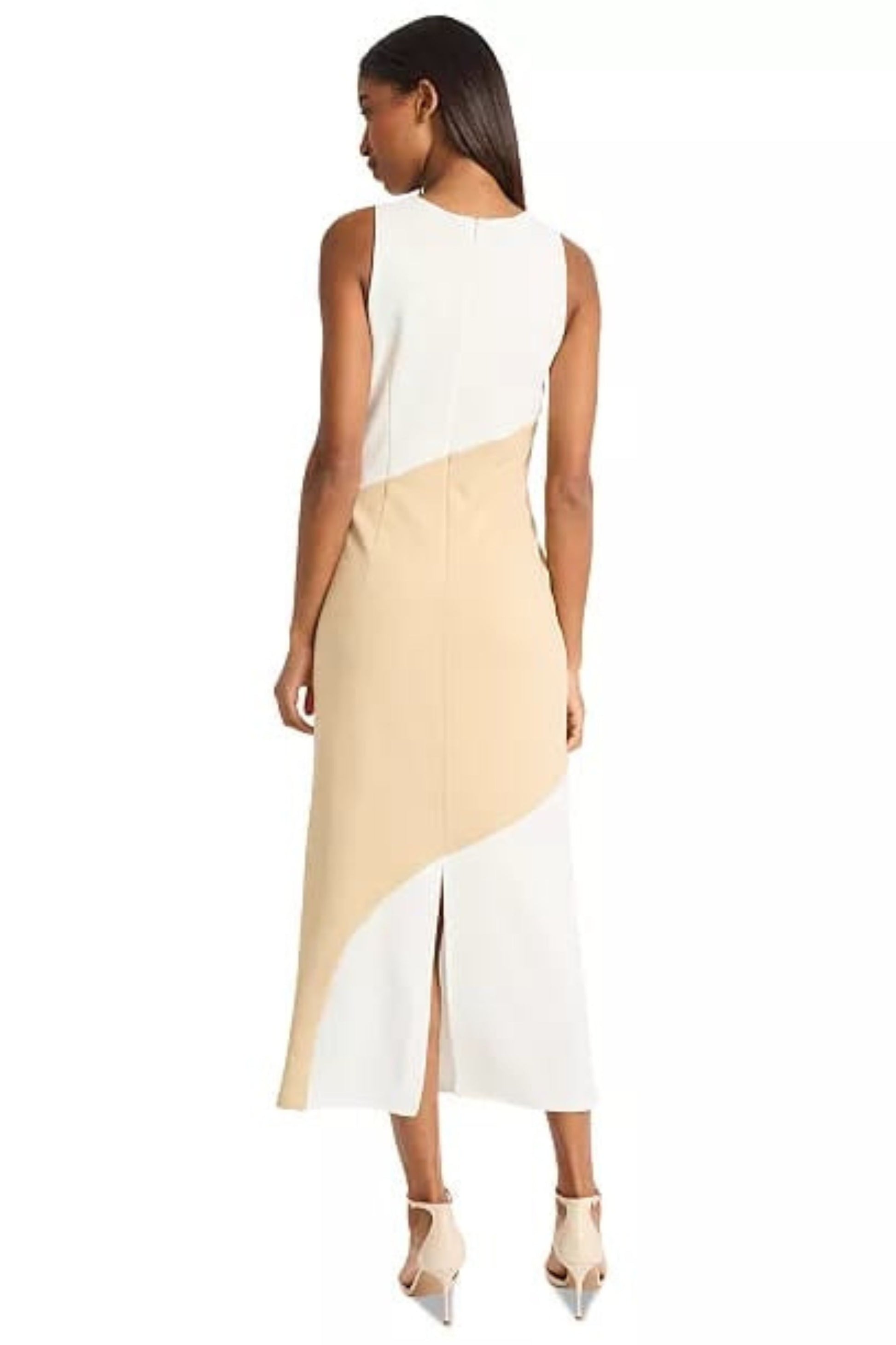 Scuba crepe round neckline sheath dress. Dress is lined, with hidden back zipper. STYLE: D9635M