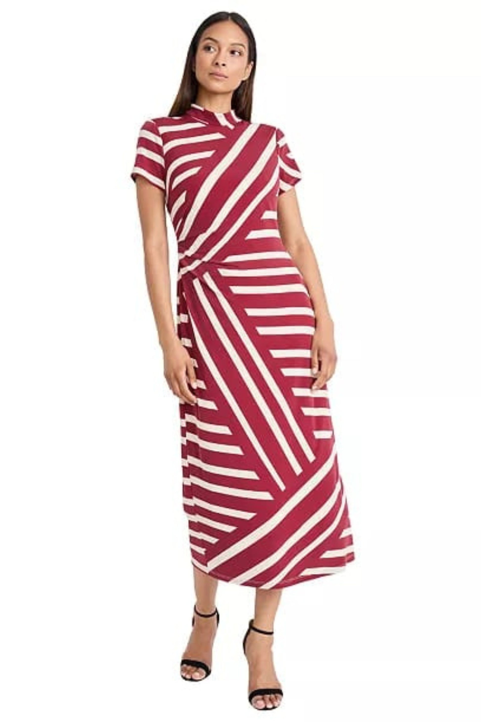 Stretch jersey short sleeve dress. Dress is lined, with hidden back zipper. STYLE: D9829M