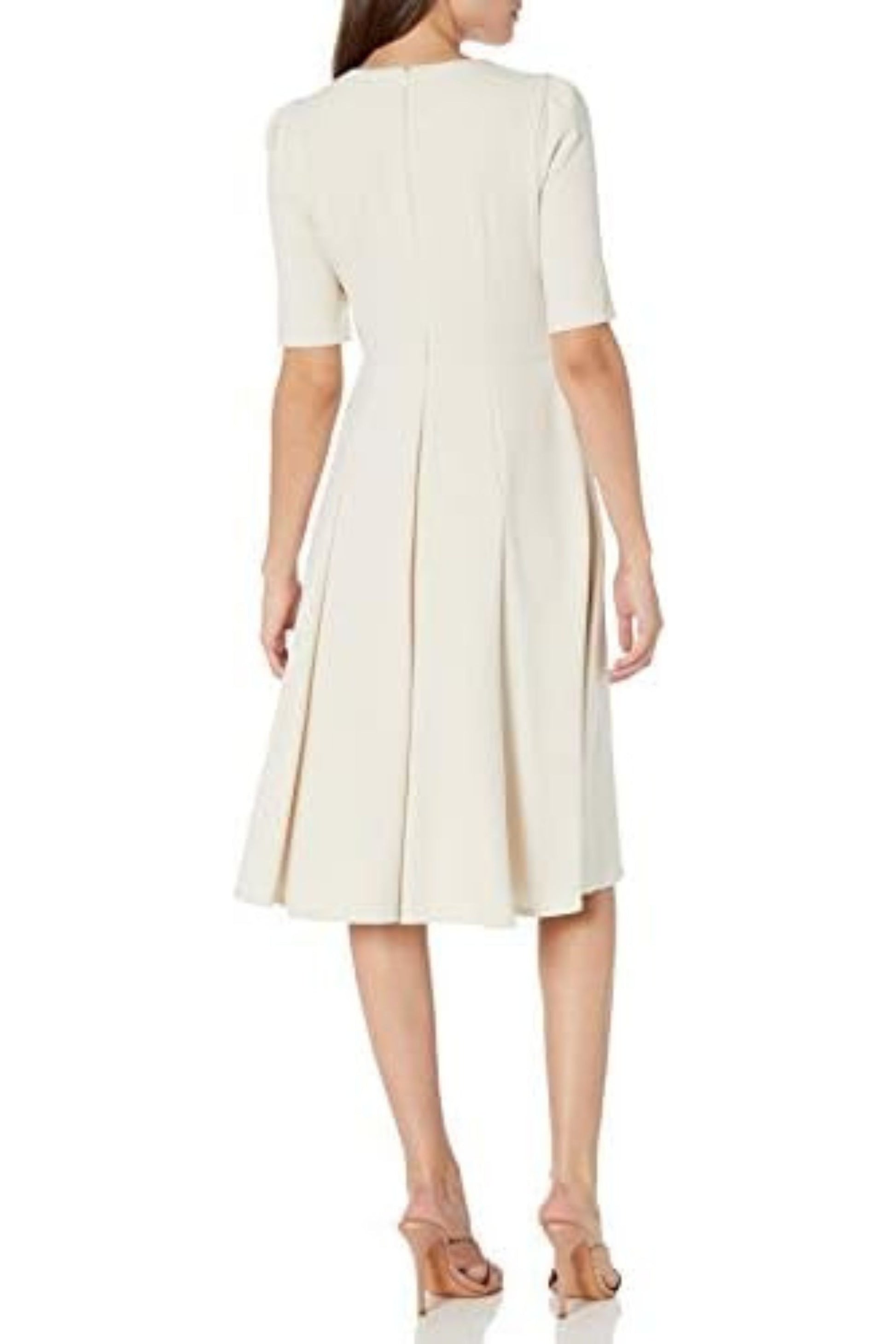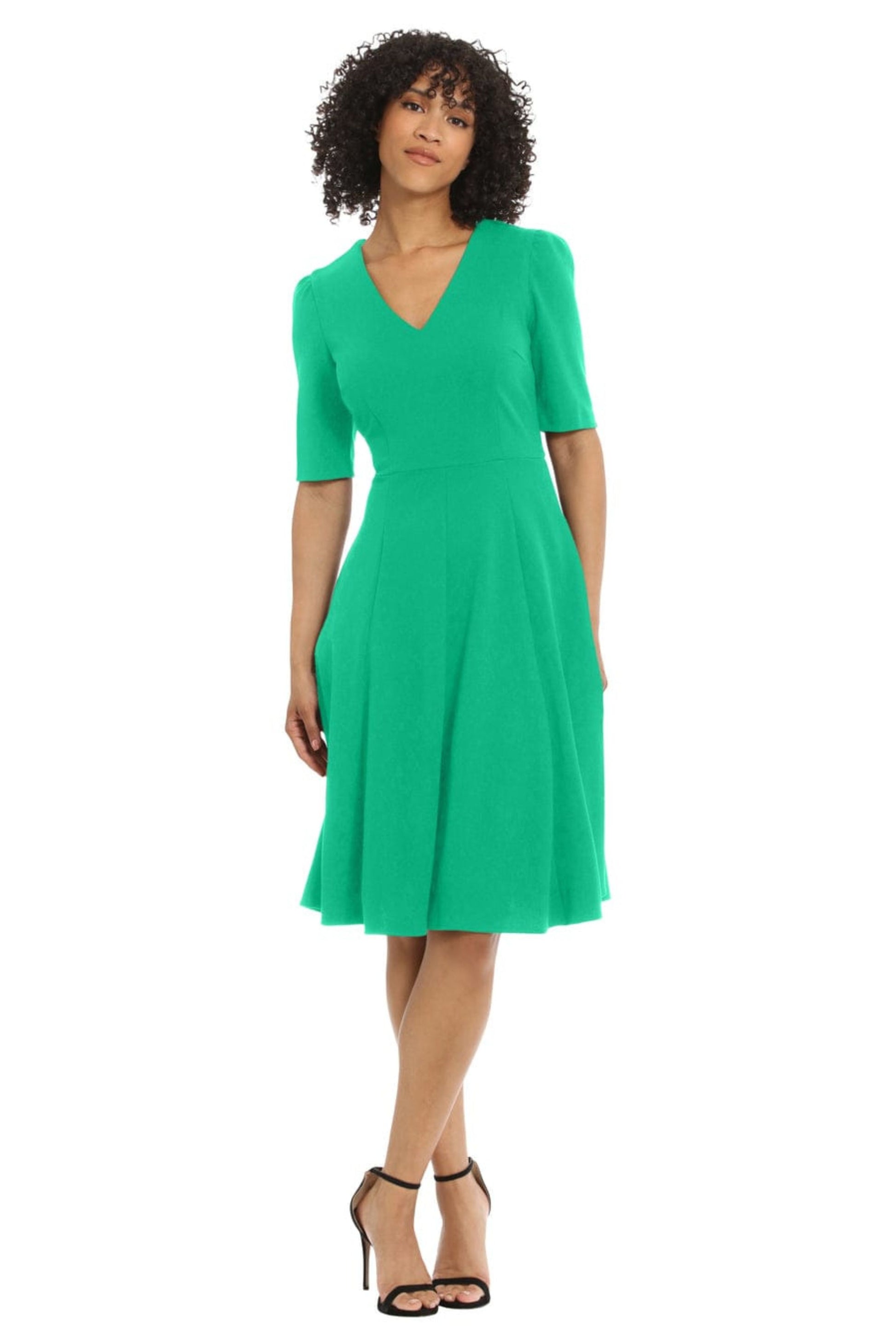 Scuba crepe dress with functional pockets. Dress is not lined, has hidden back zipper. STYLE: D6962M