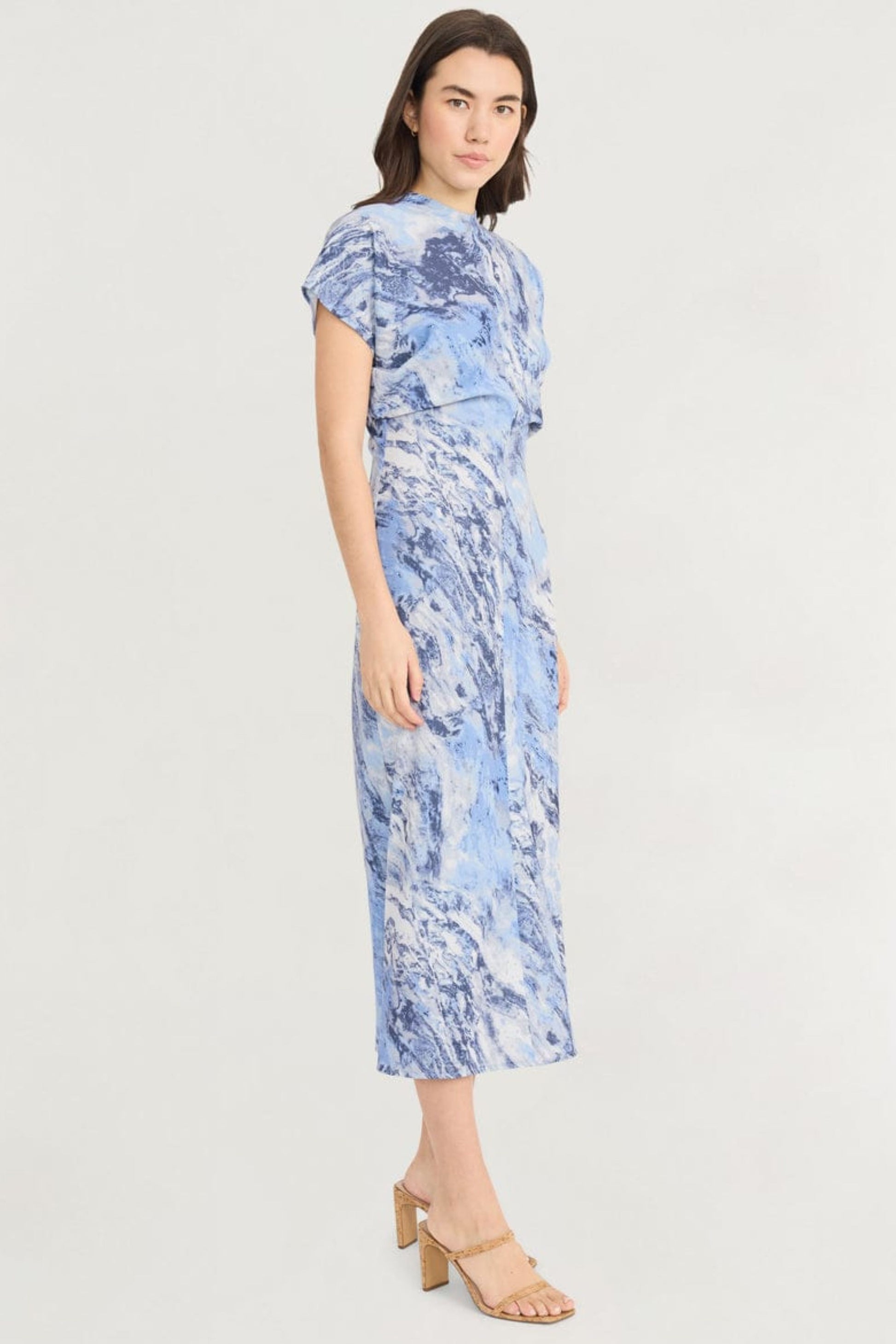 Round neckline silky woven dress. Dress is not lined, has hidden back zipper. STYLE: Y10286M