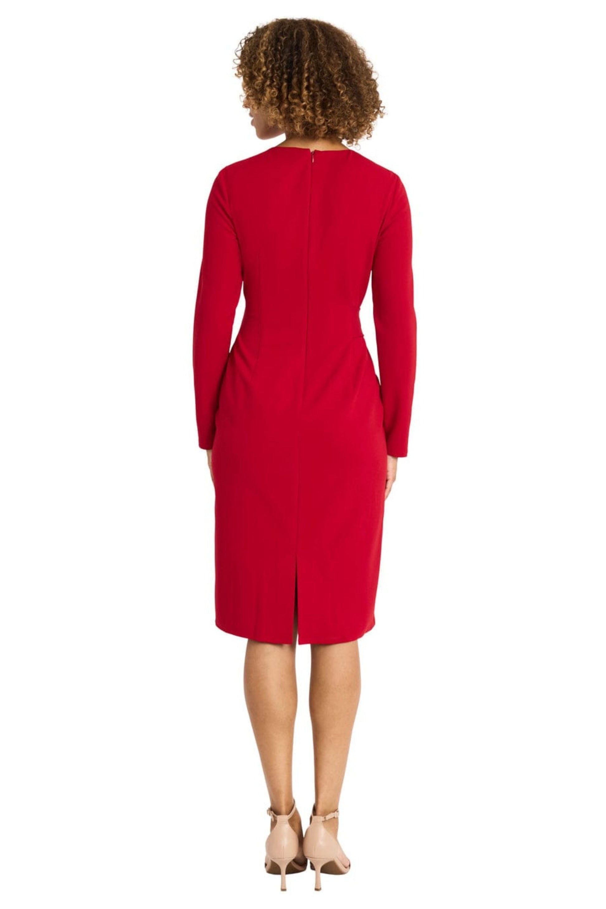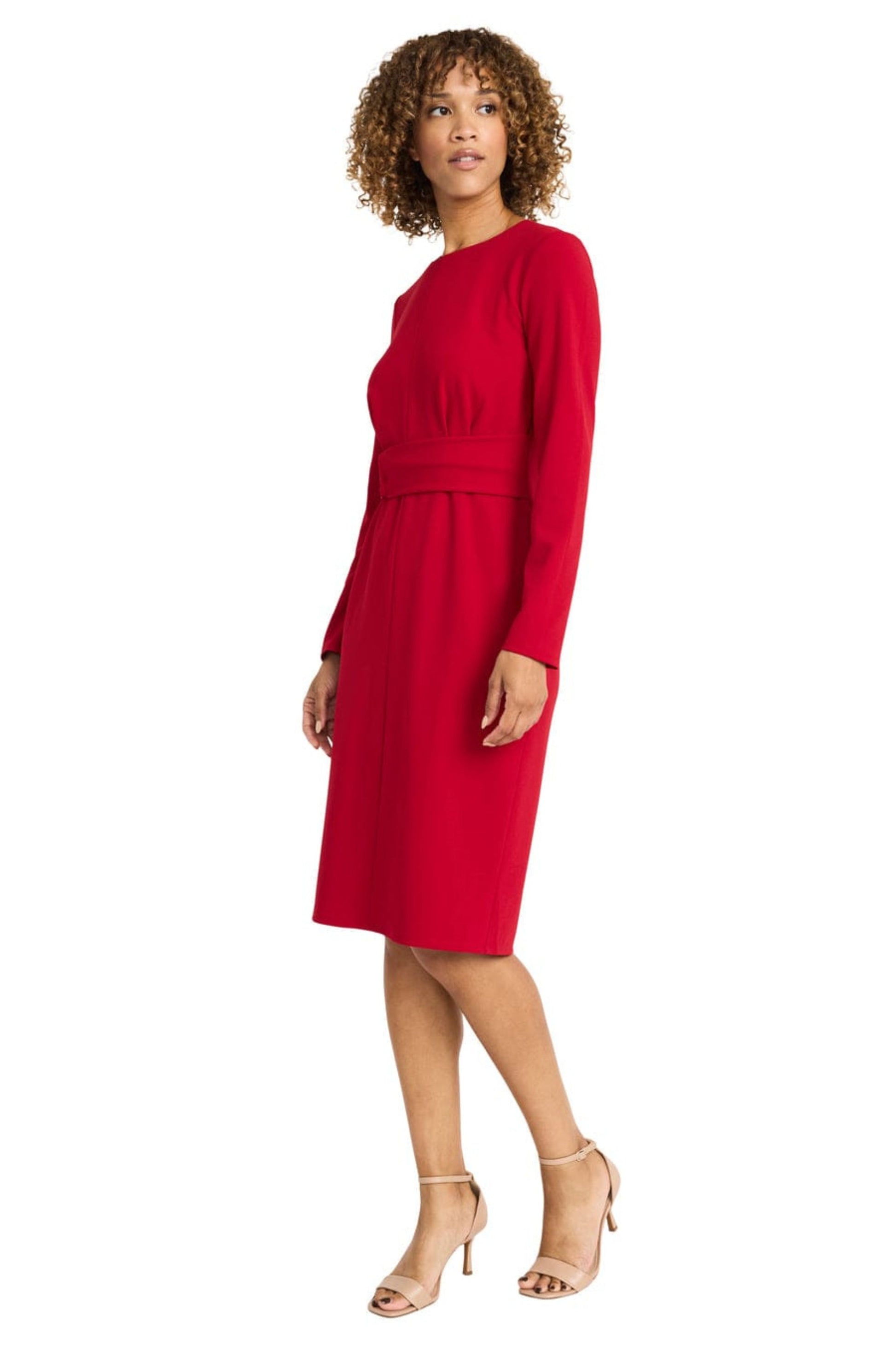 Scuba crepe dress with hardware waist band detail. Dress is lined with hidden back zipper. STYLE: G6334M