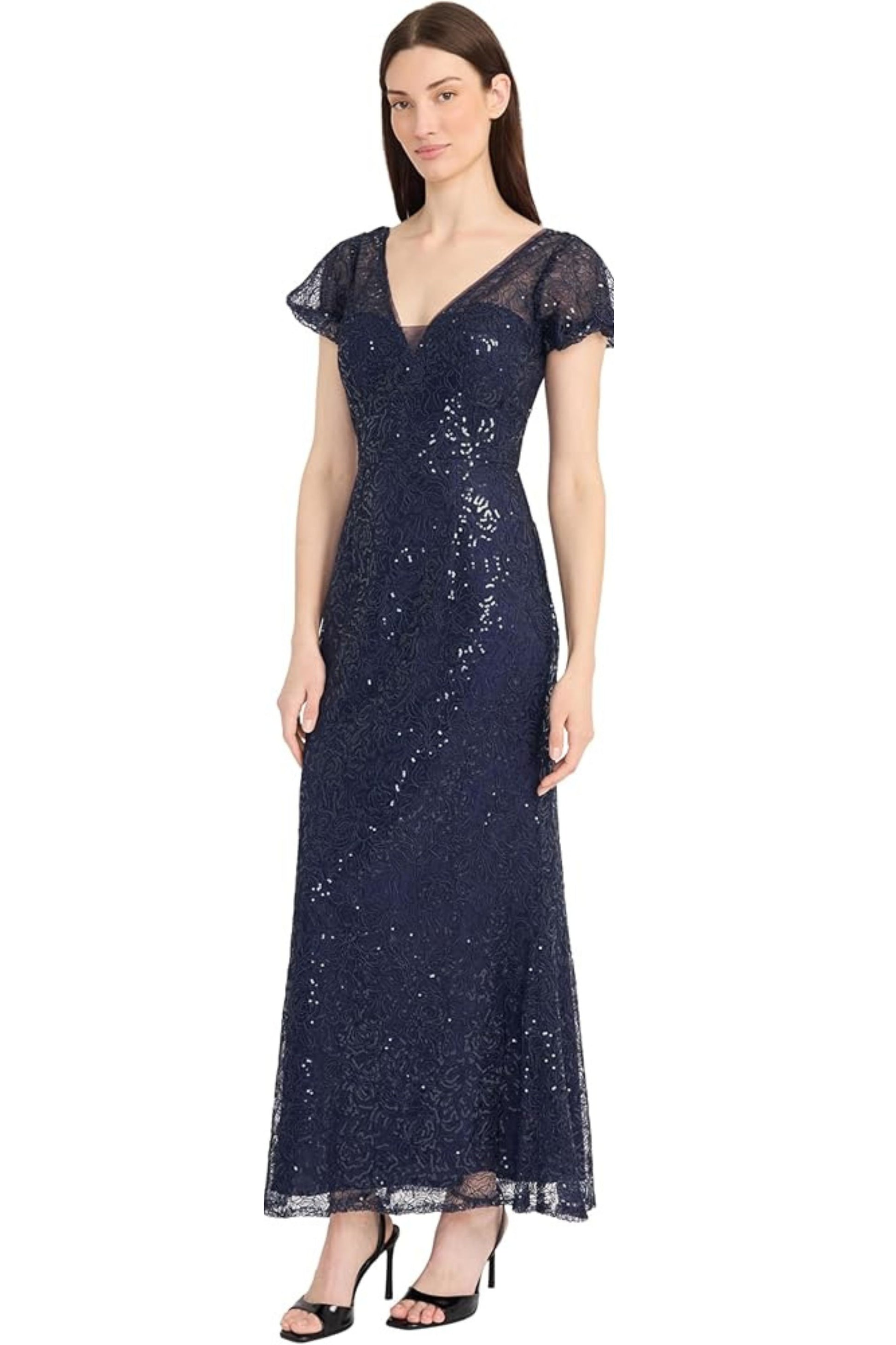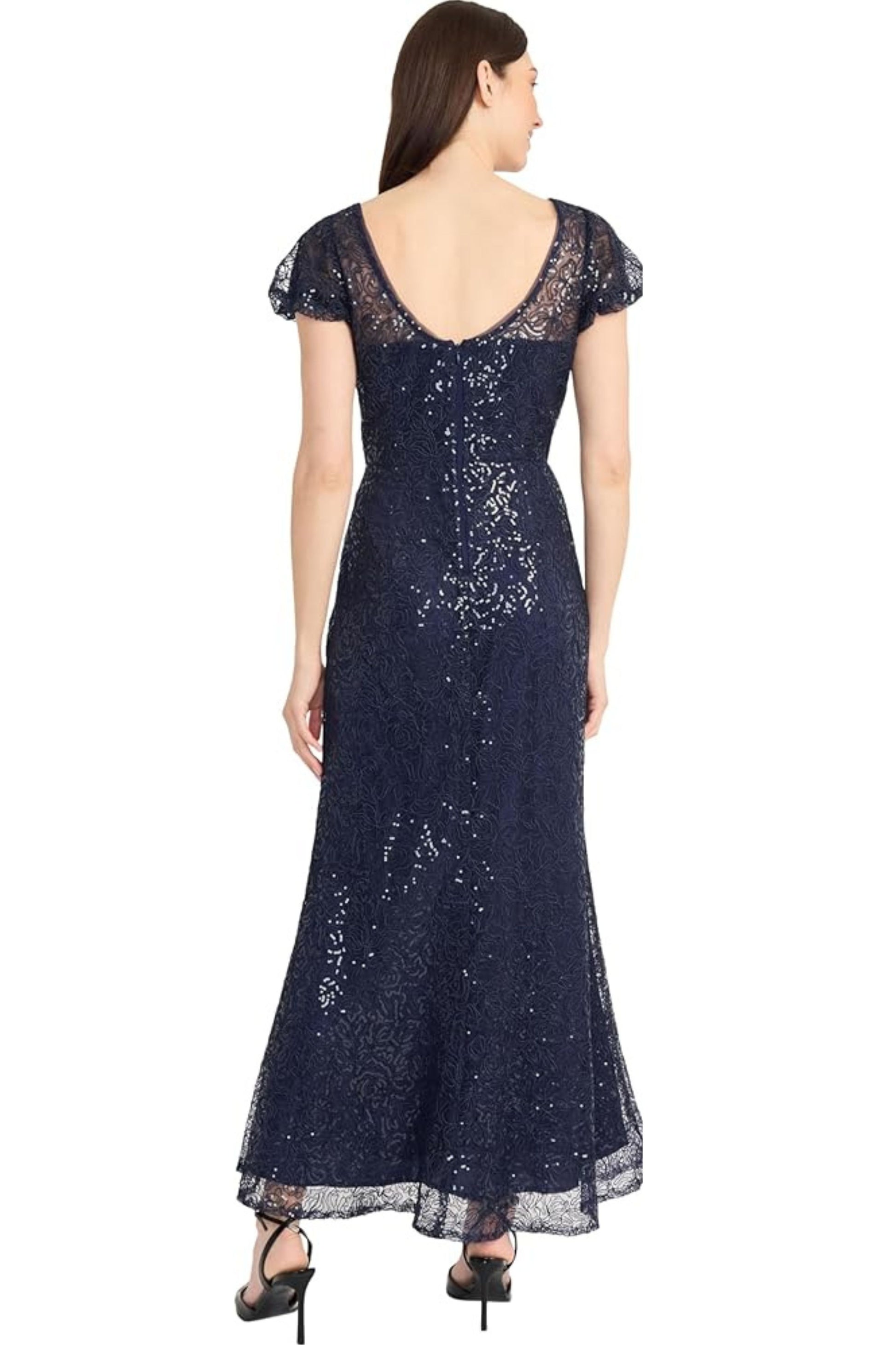 Sequin lace short puff sleeve special occasion dress. DRess is lined with hidden back zipper. STYLE: G6402M