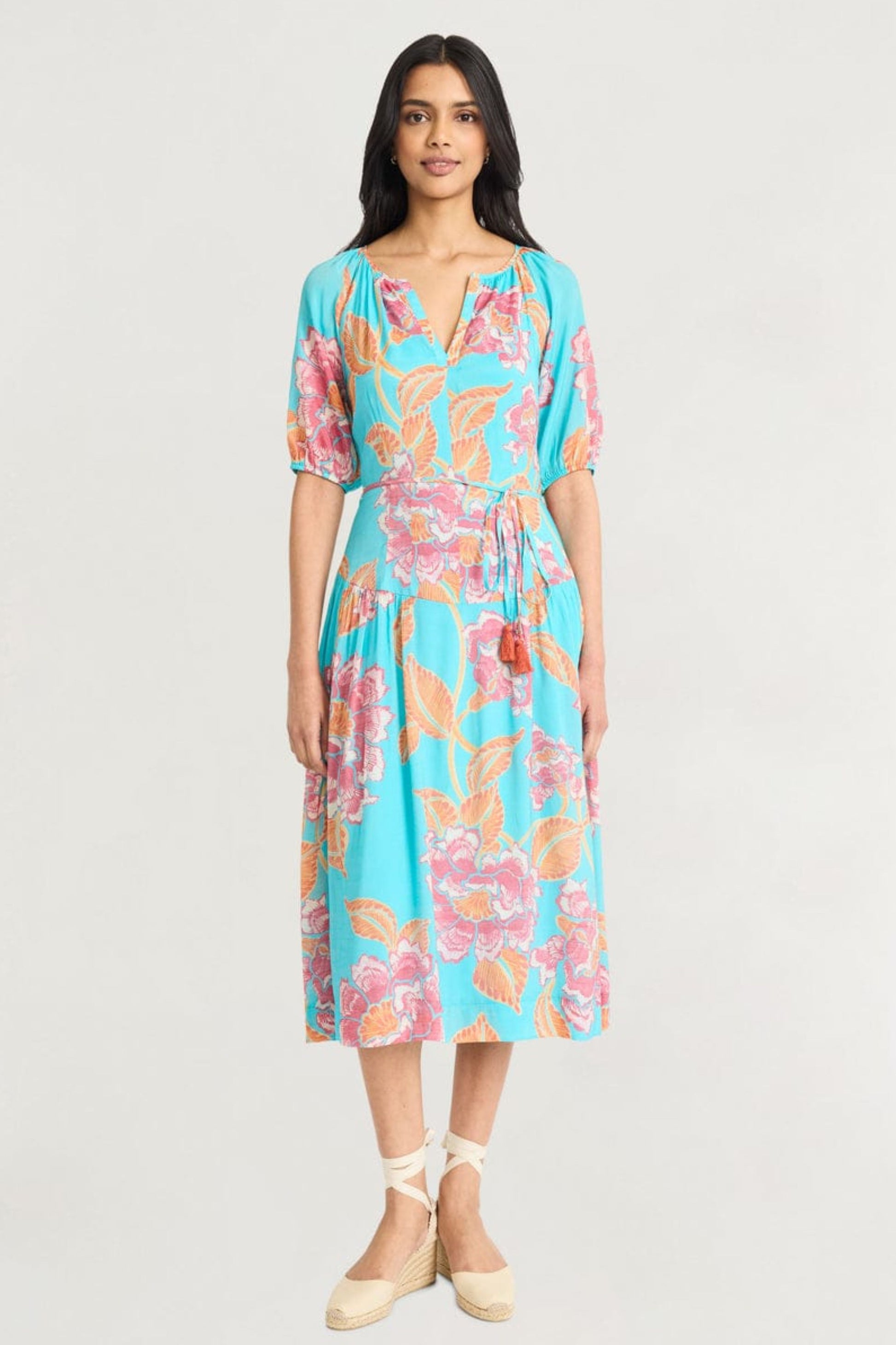 The Good Journey Floral Drop Waist Midi Sun Dress