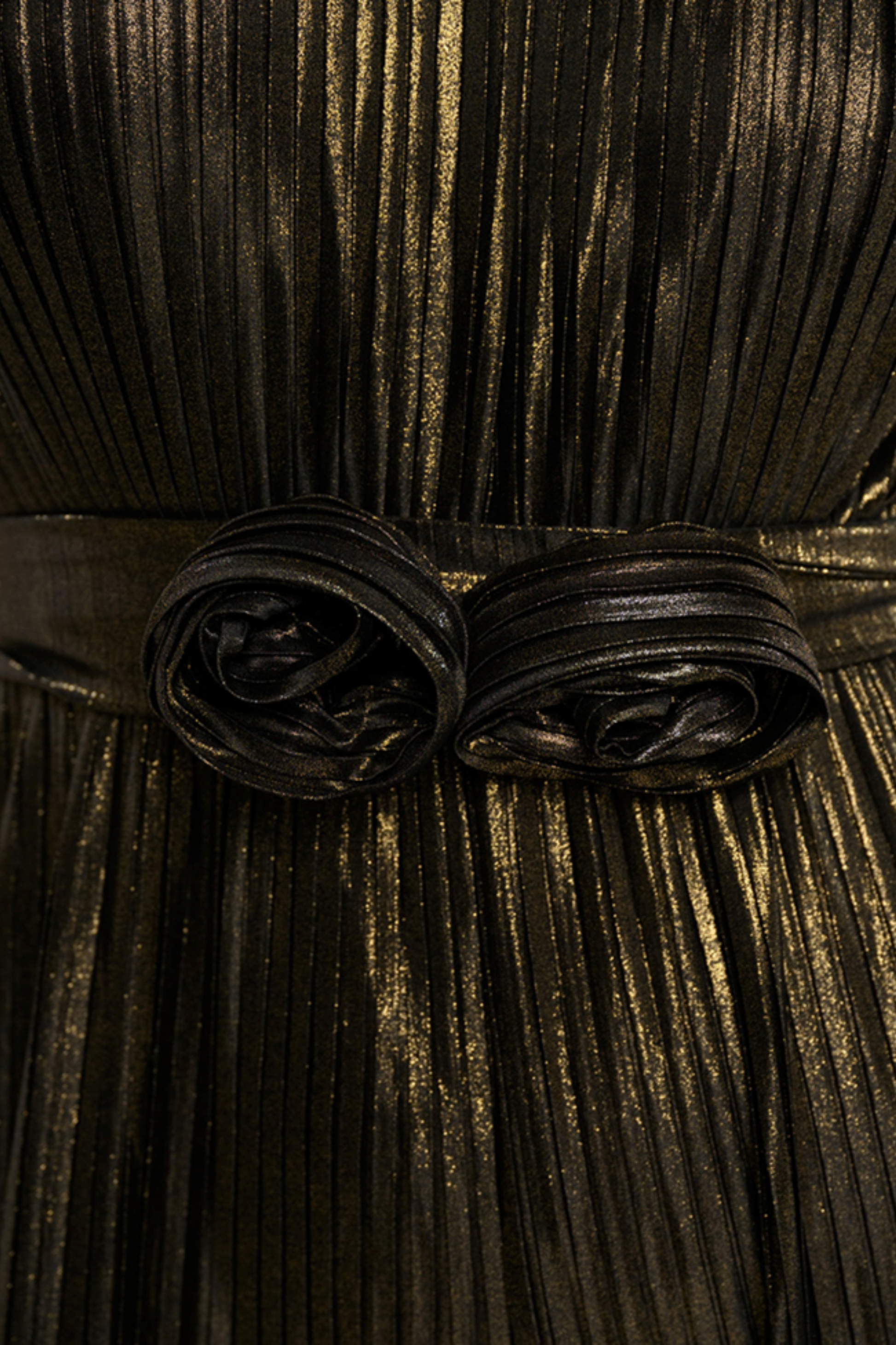 Cenia Metallic Pleated Halter Wide Leg Jumpsuit