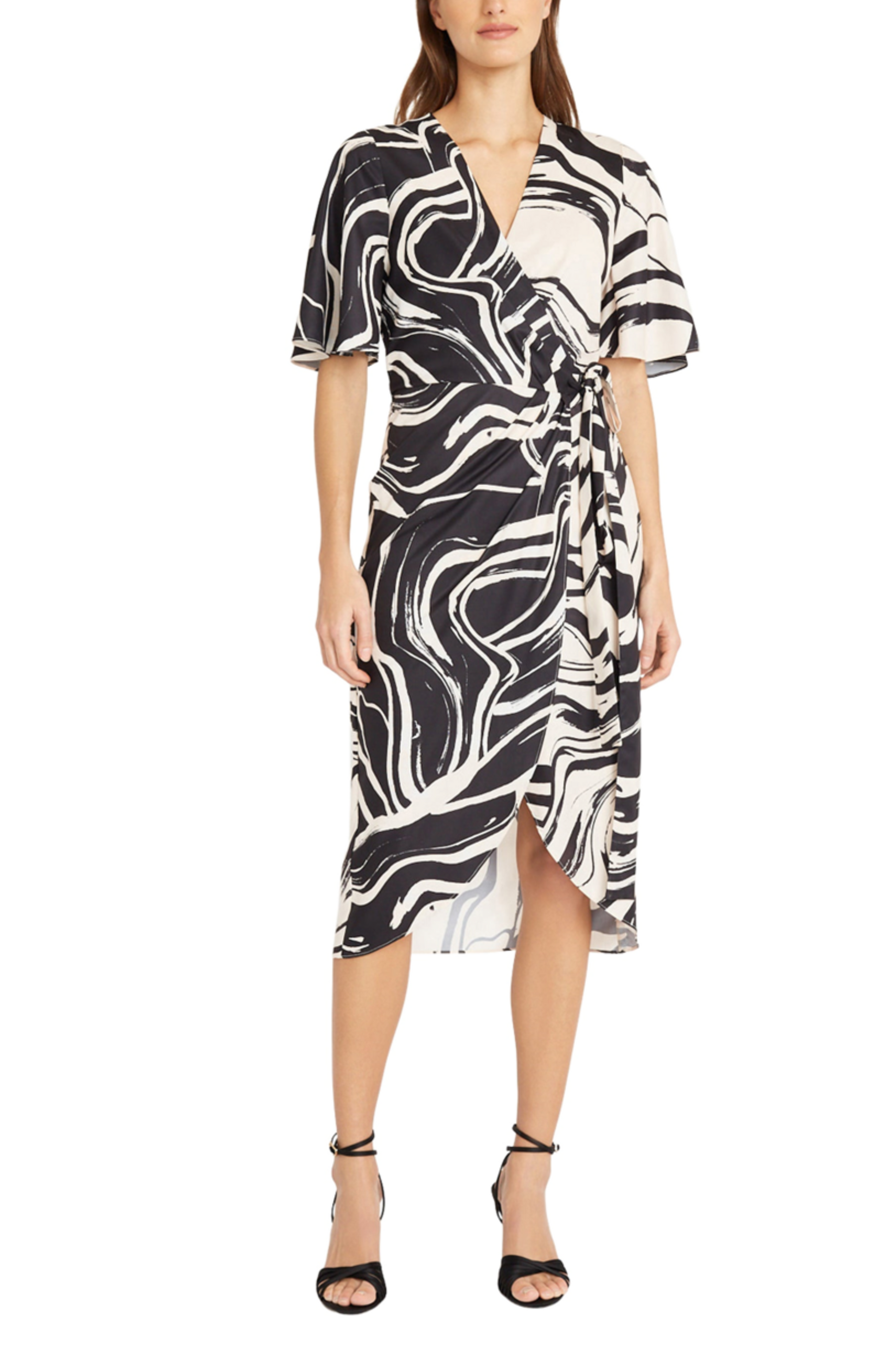 Donna Morgan Short Sleeve Abstract Wrap Midi Dress
