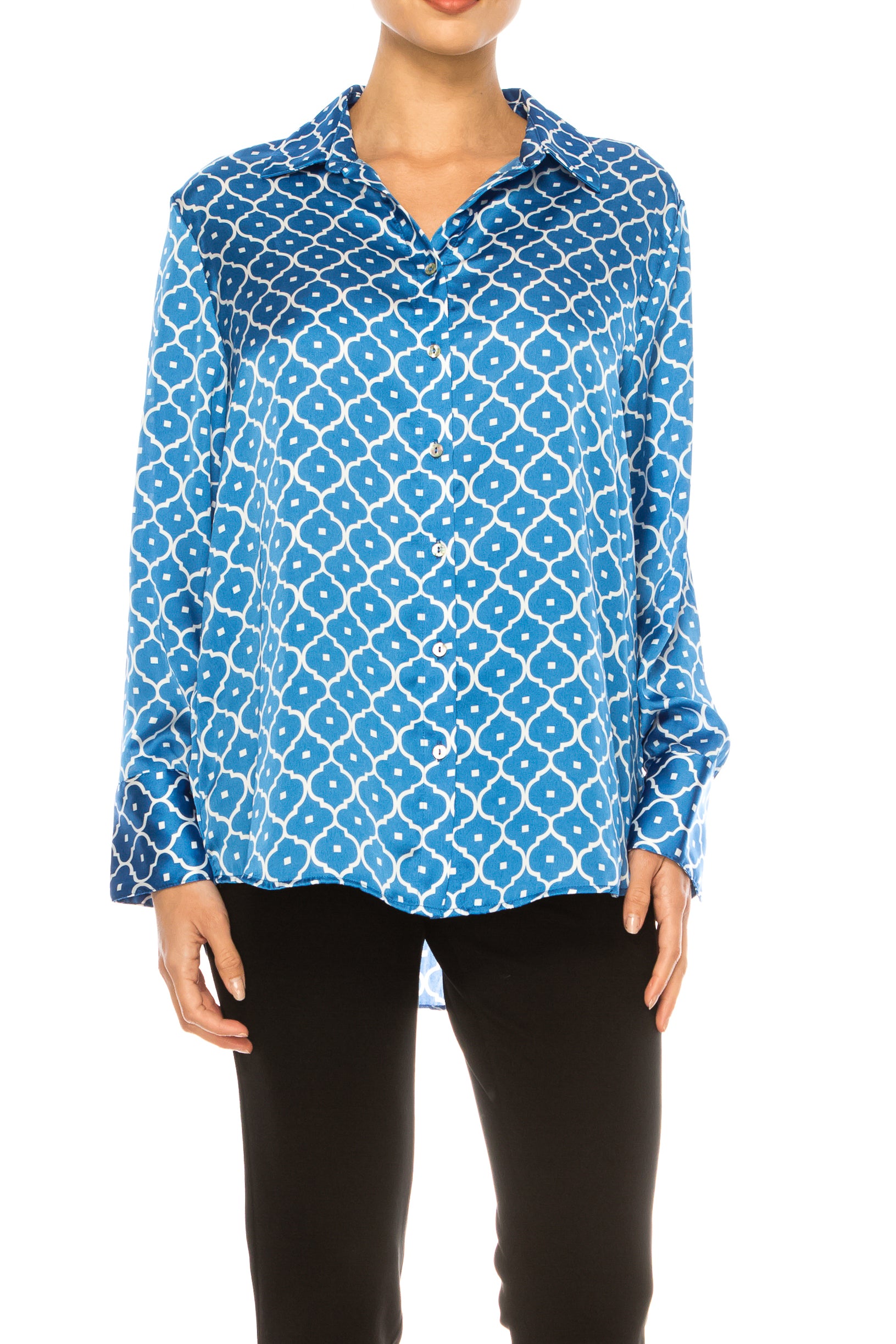 Hester & Orchard Long Sleeve Button-Up Printed Top