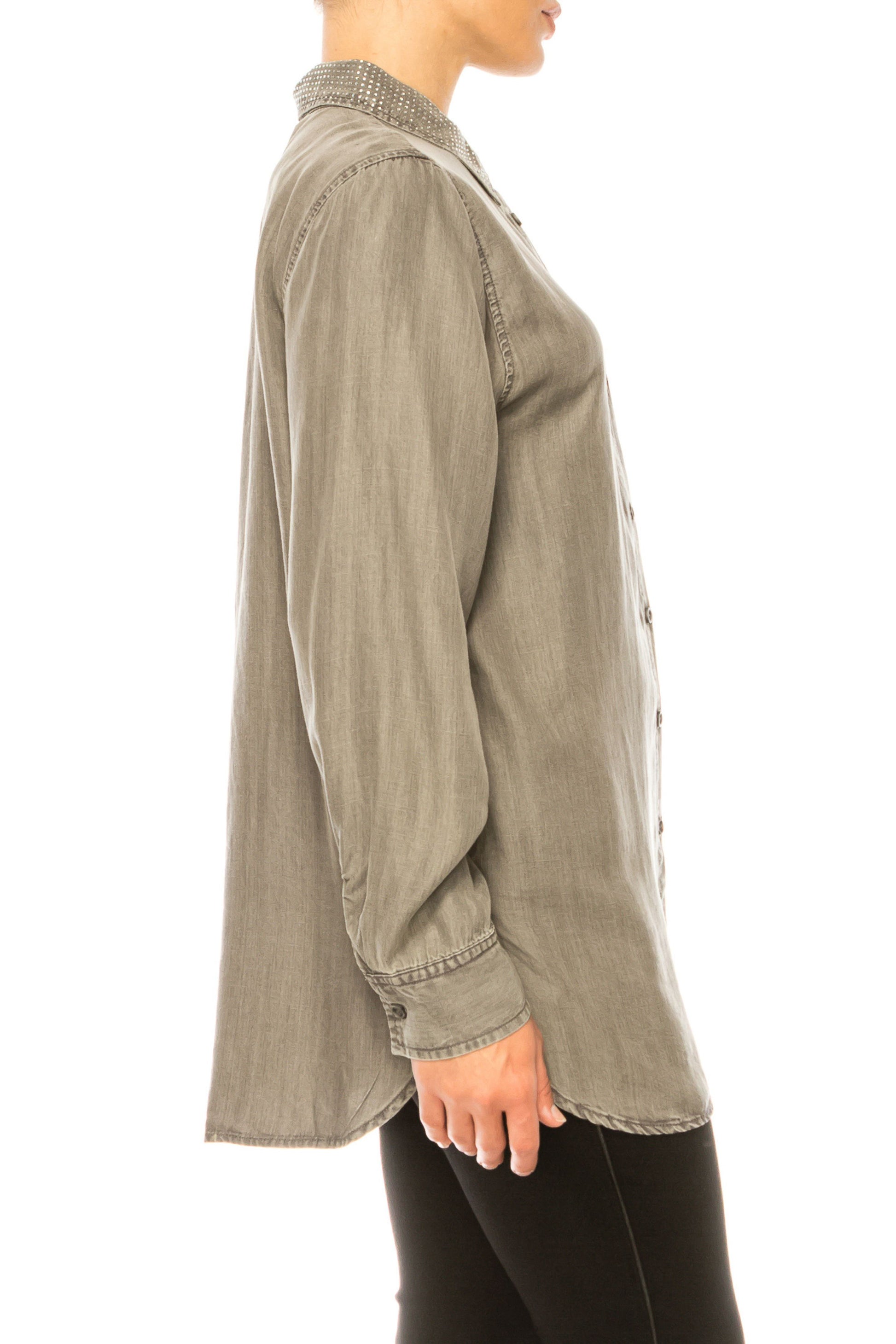 Hester & Orchard Long Sleeve Rhinestone Collar Top