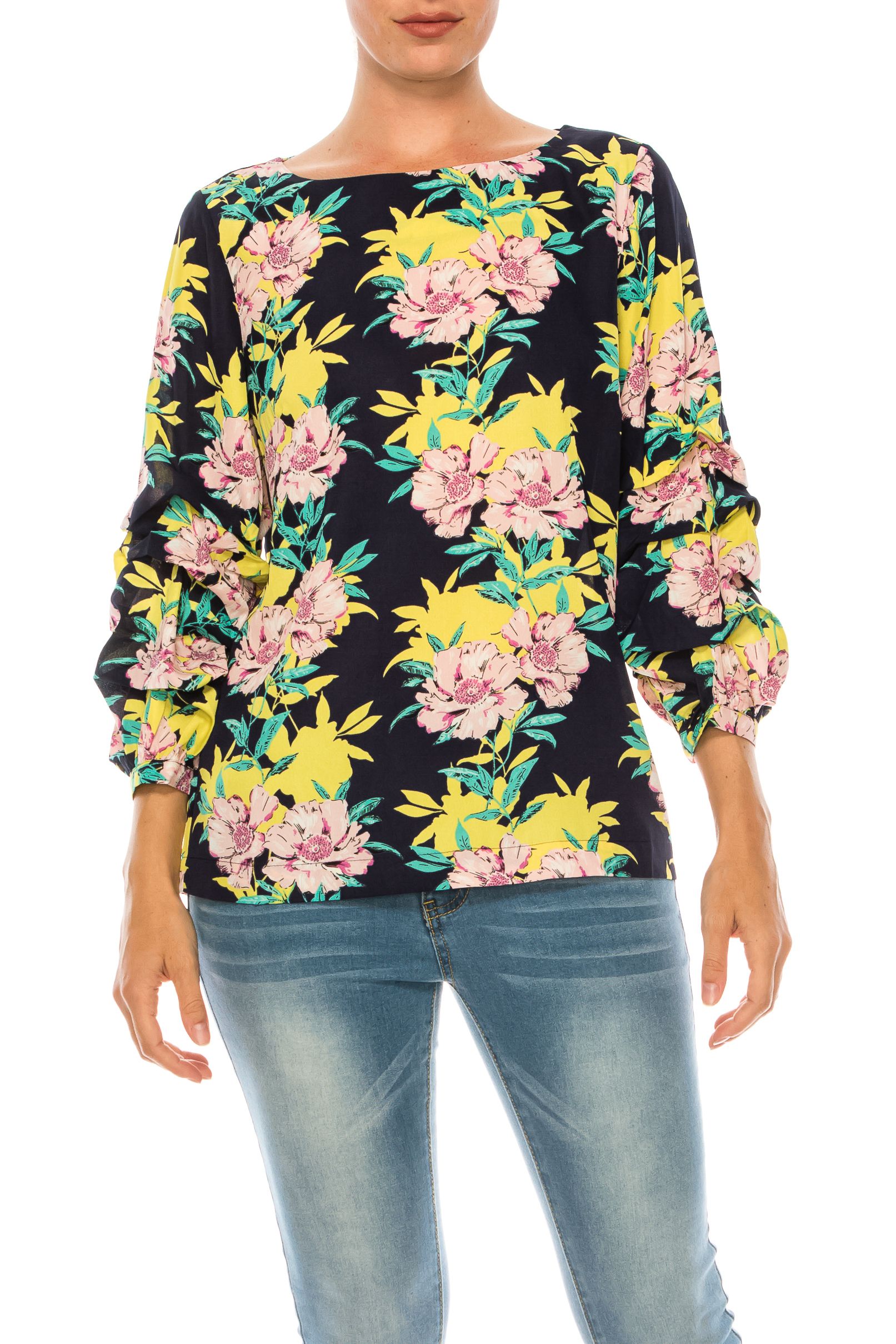 A lovely blouse that features a round neckline, pleated puff sleeves with a single button closure, along with a hidden side zipper.